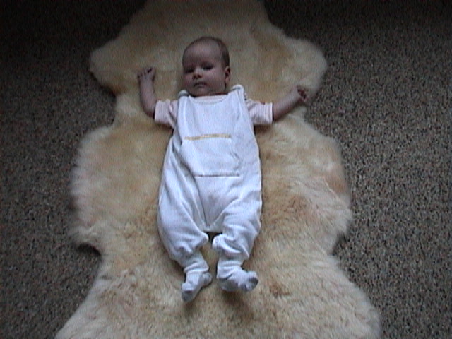Toen mama en ik thuis kwamen van de boerenmarkt was het huis helemaal afgeschilderd. Mama heeft zich bijzonder verheugd en vermaakt op die markt. Allemaal gezonde dingen, geteeld/gekweekt/gegroeid op een natuurlijke manier. We zijn ook nog even naar de aapjes op het apeneiland van Stichting Aap wezen kijken. Niet dat ik veel gezien heb, want ik kan nog niet over de rand van de kinderwagen heen kijken. Mama heeft zich wel vermaakt, en dat vind ik ook goed. Ook vond mama toen we thuis kwamen een pakketje uit Nieuw Zeeland van mijn oudoom Pierre en oudtante Lou. Papa heeft het ’s avonds uitgepakt. Oom Pierre en tante Lou hebben mij enorm verwend met een echt Nieuw Zeelands schaapsvel: zo heerlijk zacht! Mama is gelukkig te groot voor het vel anders zou zij er de hele dag op liggen! Ik ben een echte bofkont!
