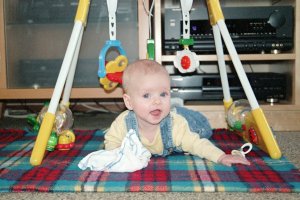 Ik heb veel geslapen. Draai me moeiteloos op mijn buik en draai dan 180 graden door de box heen. Op mijn buik liggend grijp ik van alles vast en probeer daar wat mee te doen. Verder ben ik druk aan het oefenen om te kruipen. Papa heeft mij rond een uur of acht in bed gelegd.