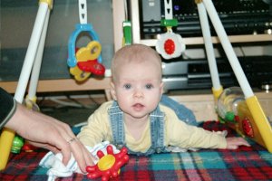 Voor het eerst op dinsdag naar Happy Faces (het kinderdagverblijf). Mama heeft mij vroeg opgehaald, want opa heeft in de tuin alle paardebloemen verwijderd (en toen ook maar het gras gemaaid wat wel nodig was). Ik heb nog even gekeken hoe goed opa dat deed. Het was erg mooi weer. Mama heeft mij een hapje gegeven: wortel. Ik heb mezelf er helemaal mee onder gesmeerd, maar nauwelijks iets doorgeslikt. Geef mij maar (moeder)melk!