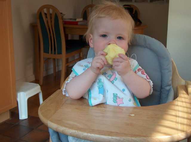 Maandag en dinsdag ben ik naar de juffies geweest. Omdat het zulk lekker weer was heb ik veel buiten gespeeld en kwam ik meestal helemaal zwart weer bij papa en mama. Daarom wordt ik vanaf nu ’s avonds gebadderd voor het naar bed gaan. Woensdag ben ik bij opa en oma geweest. Die hebben een leuk mutsje tegen de zon voor mij gekocht. Samen hebben we mijn verjaardagscadeau al gekocht. Ik krijg een zandbak van alle grootopa’s en oma. Daar ben ik zeker aan toe want ik kruip nu in de (groente)tuin van mama! Oma heeft goed naar mij geluisterd. Ik houdt heel erg van fruit. Ze heeft me gewoon een hele appel in mijn handjes gegeven en die heb ik heerlijk afgeschraapt met mijn tandjes. Wat een slimme oma heb ik toch!