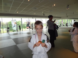 Damian heeft op 23 juni zijn groene slip met judoën behaald. In een kleine groep in de bovenzaal van Van Rheenen liet Damian aan de leraren zien hoe goed hij de diverse judo grepen, rollen en worpen uitvoerde. Het was wel vroeg op staan (want al om 8 uur ’s ochtends was het examen), maar het was de moeite waard.